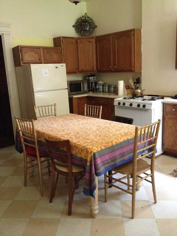 That’s not actually my table; it will be departing the premises by the end of July (I told the owners they were welcome to keep a few things there for the nonce – I have plenty of other stuff to do before worrying about the first floor!). I’ll have a smallish rolling work island there instead, after I make it, of course (I like to eat at my dining room table).