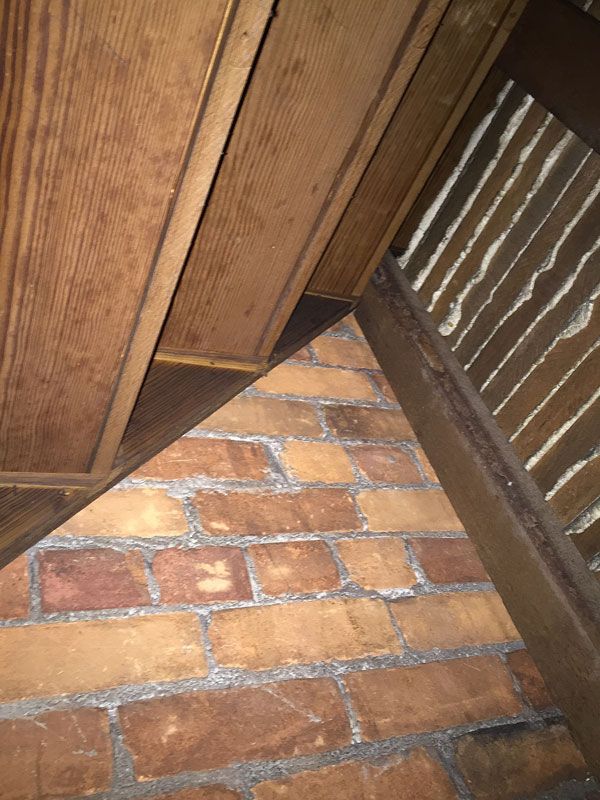 After sweeping out the dust and a bit of plaster from under, I crawled in for a closer look at the construction that has remained – as far as I can deduce – undisturbed since it was built in 1906.
